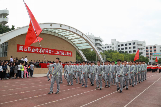 上午9时整,伴着早晨明媚的阳光,踏着激昂奋进的《运动员进行曲》的节奏,运动会入场式开始,走在最前列的是国旗、校旗、会标、锣鼓、裁判员方阵,他们精神抖擞、气宇轩昂地向主席台走来。12支系(部)代表队依次入场,他们穿着整齐的服装,迈着矫健而又坚实的步伐,高喊着嘹亮的口号,顺次通过主席台,接受院领导和全校师生的检阅,展现了我院广大师生积极向上的精神风貌。