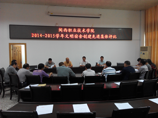10月20日上午,我院“2014-2015学年文明宿舍创建先进单位”评选活动在办公楼二楼会议室举行。副院长吴新业,各系部学生工作负责人和学工处、社区中心相关人员参加。