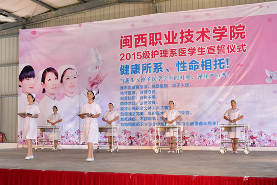 10月16日上午,护理系组织2015级新生在北校区礼堂举行“医学生宣誓仪式”。院长来永宝、副院长卢兆梅,市卫生学校校长、学院护理系主任张鹰厦,市卫计委科教科负责同志,市第一医院、第二医院、妇幼保健院、中医院、人民医院护士总长,学院教务处、学工处、团委负责人以及护理系全体师生出席宣誓仪式。