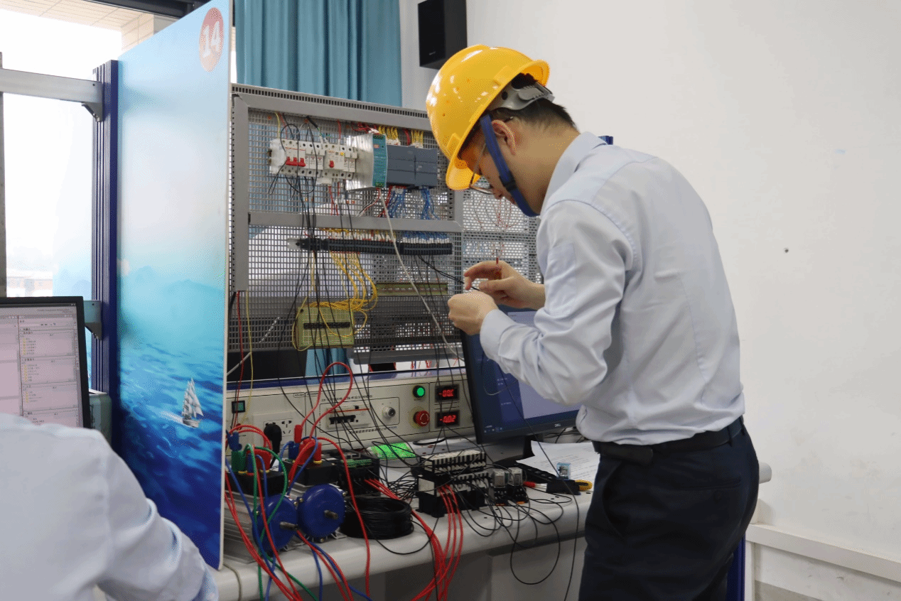 决赛当日,选手们奋勇拼搏,在赛场上挥洒汗水,充分展现了精湛的电气技能与良好的职业素养,顺利完成了各项竞赛任务。