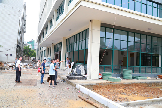 前些日子,马春延书记首先察看了校前区建设工地,了解新征地校园路网绿化建设和教学实训楼、学术交流中心室内装修进展以及教育系琴房建设等情况。要求有关部门要加强沟通协调,勇于担当、通力合作,采取强有力措施,加快教学实训楼室内装修和招标采购工作的步伐,加快建设项目施工,加强管理,确保工程项目如期施工,确保实训基地、实训(验)室能够按时搬迁,确保以一个崭新的校园面貌展现在评估专家和师生面前。他还提醒加强教学实训楼、学术交流中心等两栋新建大楼的安全保卫工作。
