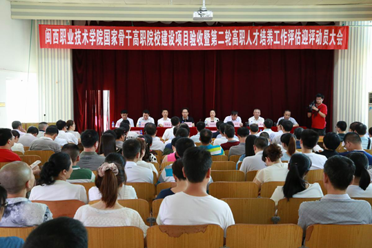 会议号召,全院教职工要鼓足干劲、再接再厉,群策群力、苦干实干,以学院同生存共发展的责任感、使命感,全力以赴投入骨干校验收和第二轮人才培养工作评估迎评工作,打一场漂亮的攻坚战,交一份满意的答卷,力争以良好成绩通过国家骨干高职院校建设项目“两部”验收。