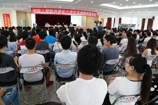 5月29日下午,我校举办中国人民解放军长江支队革命精神宣讲会。福建省东南竞争力研究院常务副院长李晋榕作《长江支队的由来、特点和精神》专题报告。福建省中国人民解放军长江支队历史研究会副会长、中国联通福建省分公司基建办主任、高级工程师崔洪海,副会长、秘书长张学勇,常务理事杨卫国出席。我院副院长刘路永,党委工作部、学生工作处负责人及相关工作人员,部分辅导员及学生代表330多人聆听报告。副院长刘路永主持报告会。