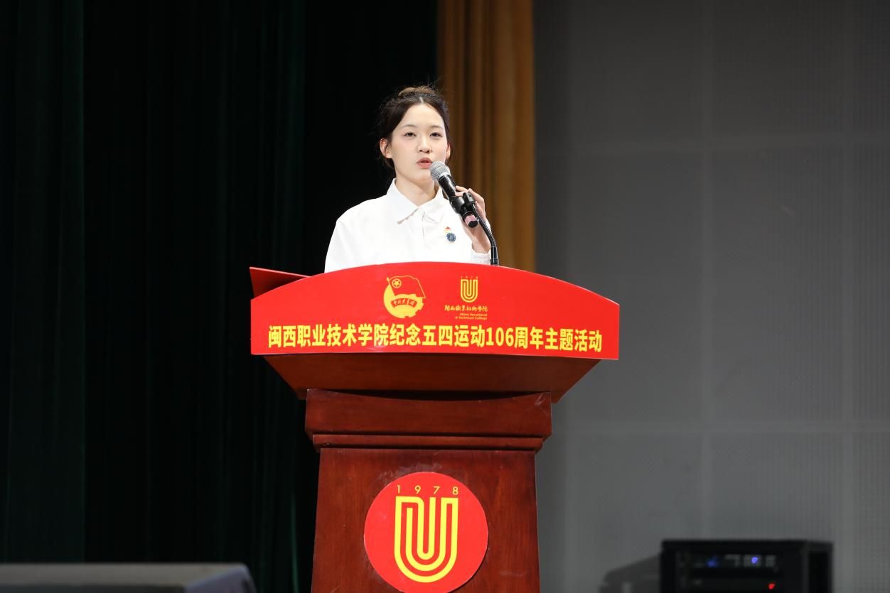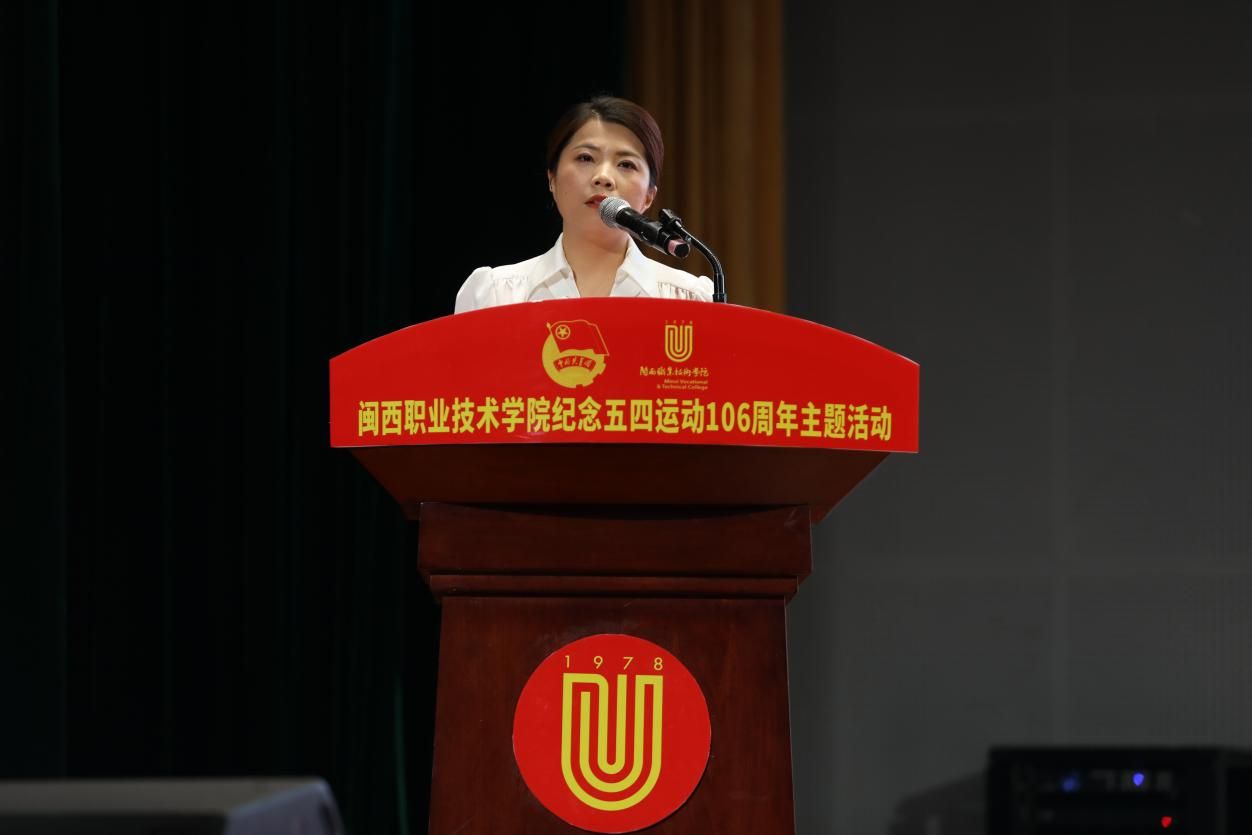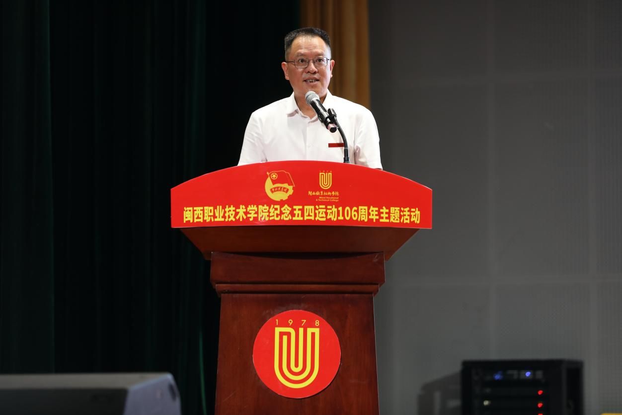 5月9日,我校在大匠堂举行“青春为中国式现代化挺膺担当”纪念五四运动106周年暨红色故事大赛。校长梁俊平、龙岩团市委副书记郭朝龙、副校长卢兆梅、纪委书记温献荣、副校长张源峰、副校长连玲娜出席活动。相关职能部门负责人,各二级学院党委书记、副书记、团委书记及师生代表等800余人参加活动。活动由校团委主要负责人主持。