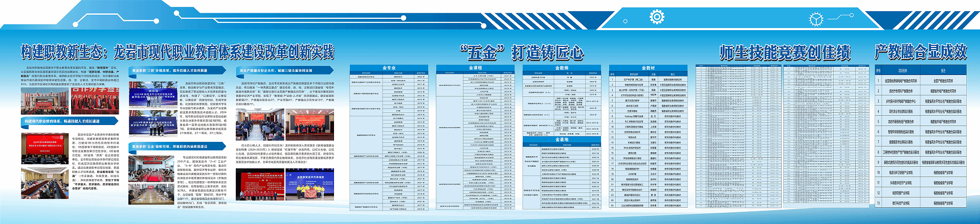 龙岩市职业教育教学成果展从构建现代职业教育体系、推进职教“三教”多维改革、聚焦职教“五金”策略引领、深化产教融合校企合作等四大方面全方位总结了龙岩市现代职业教育体系建设改革创新实践,这些成果体现了龙岩市紧跟职业教育发展趋势,在深化产教融合、校企合作、校村共建,推动教育体系与产业体系、社会体系有效对接,为闽西经济社会发展提供强大的人才和智力支持;彰显了职业教育在人才培养模式创新、教学方法改革、科技成果转化等领域的突破。