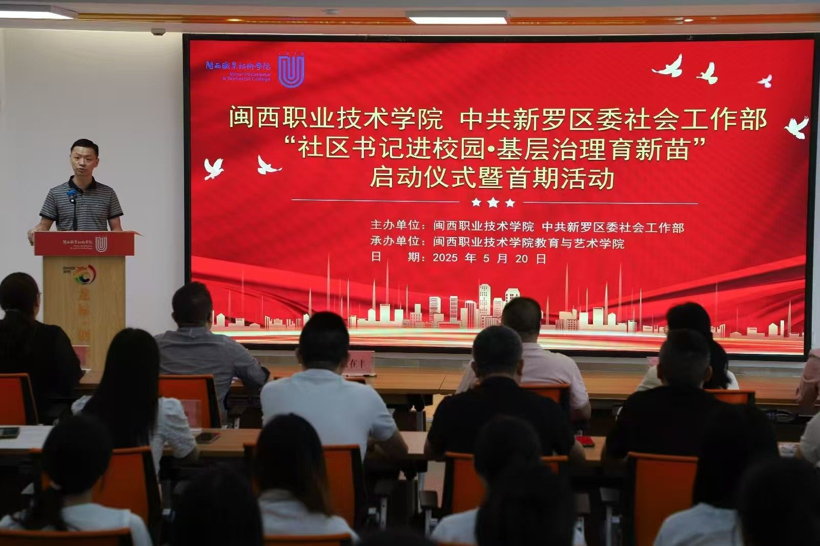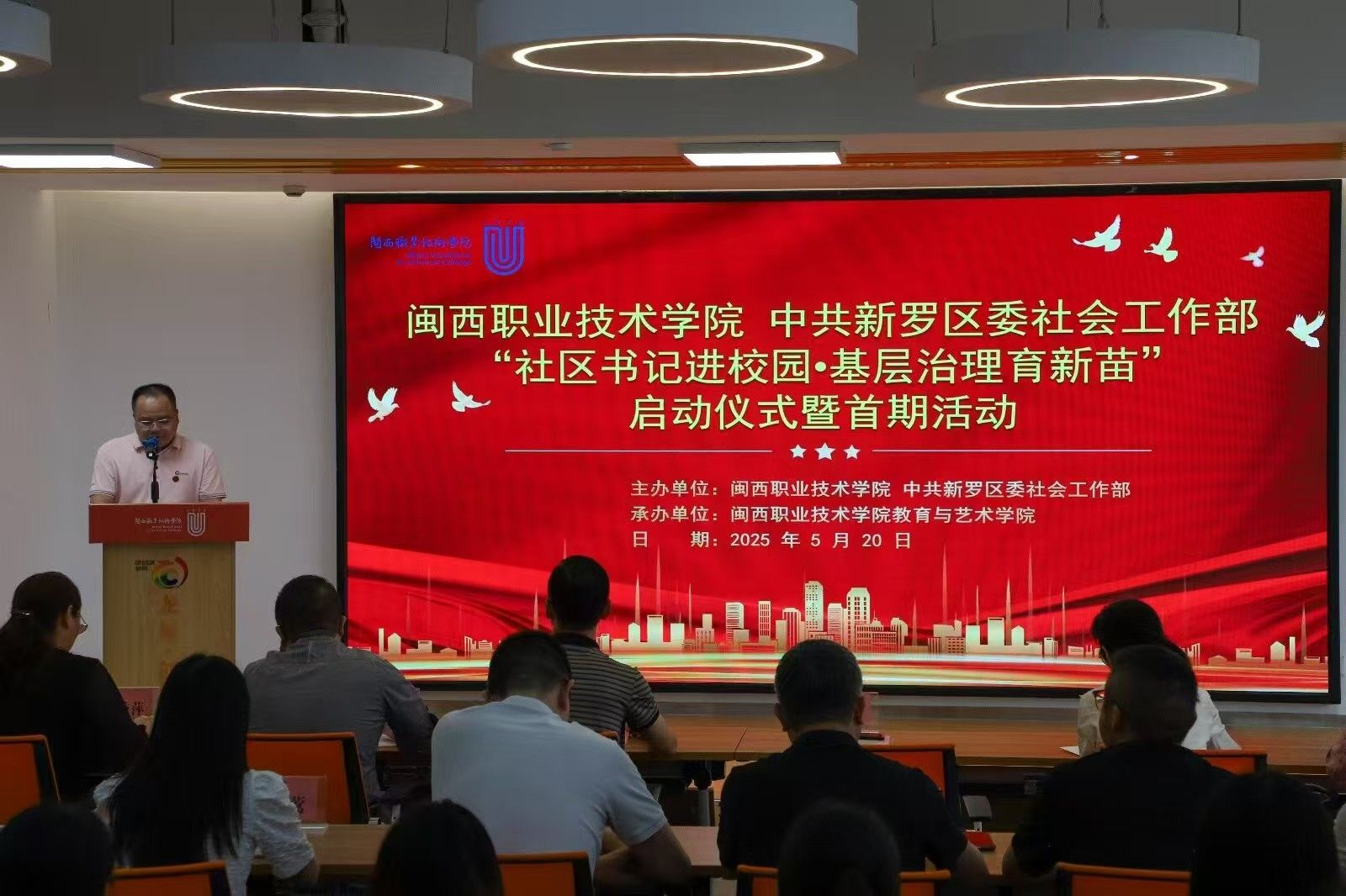 2025年5月20日,“社区书记进校园 • 基层治理育新苗”系列活动启动仪式暨首期活动在我校成功举行。此次活动由中共新罗区委社会工作部与我校联合主办、我校教育与艺术学院承办,旨在深化校社协同育人机制,为基层治理培育专业人才。