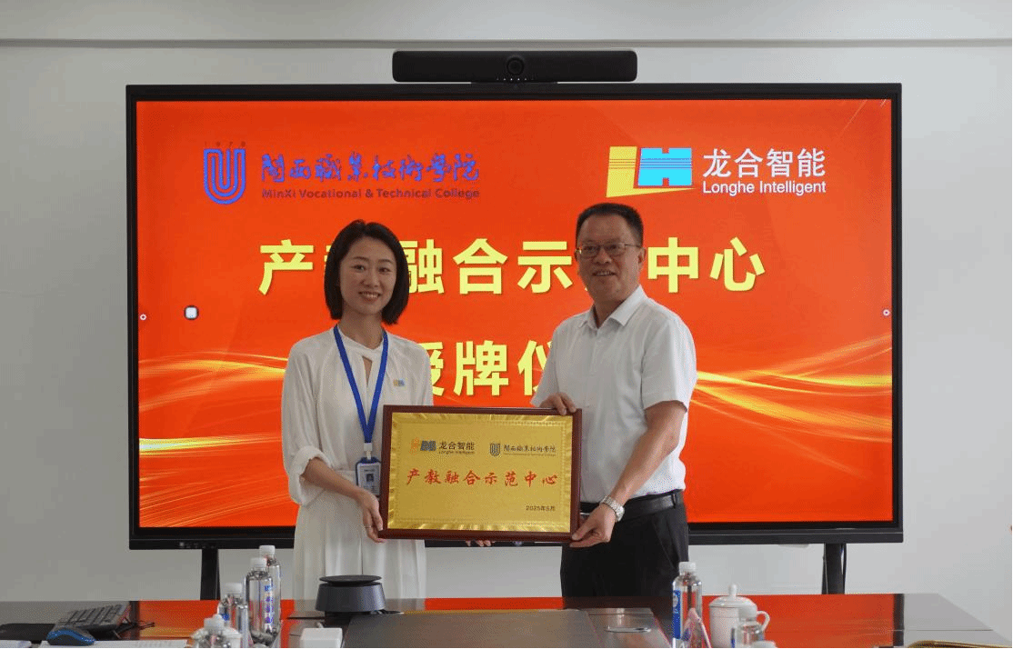 2025年5月20日,龙合智能与我校产教融合示范中心授牌仪式暨校企合作交流会圆满举行。双方围绕“现场工程师培养”“产学研协同创新”等主题展开深度合作并授牌成立“产教融合示范中心”,标志着校企合作迈入新阶段。