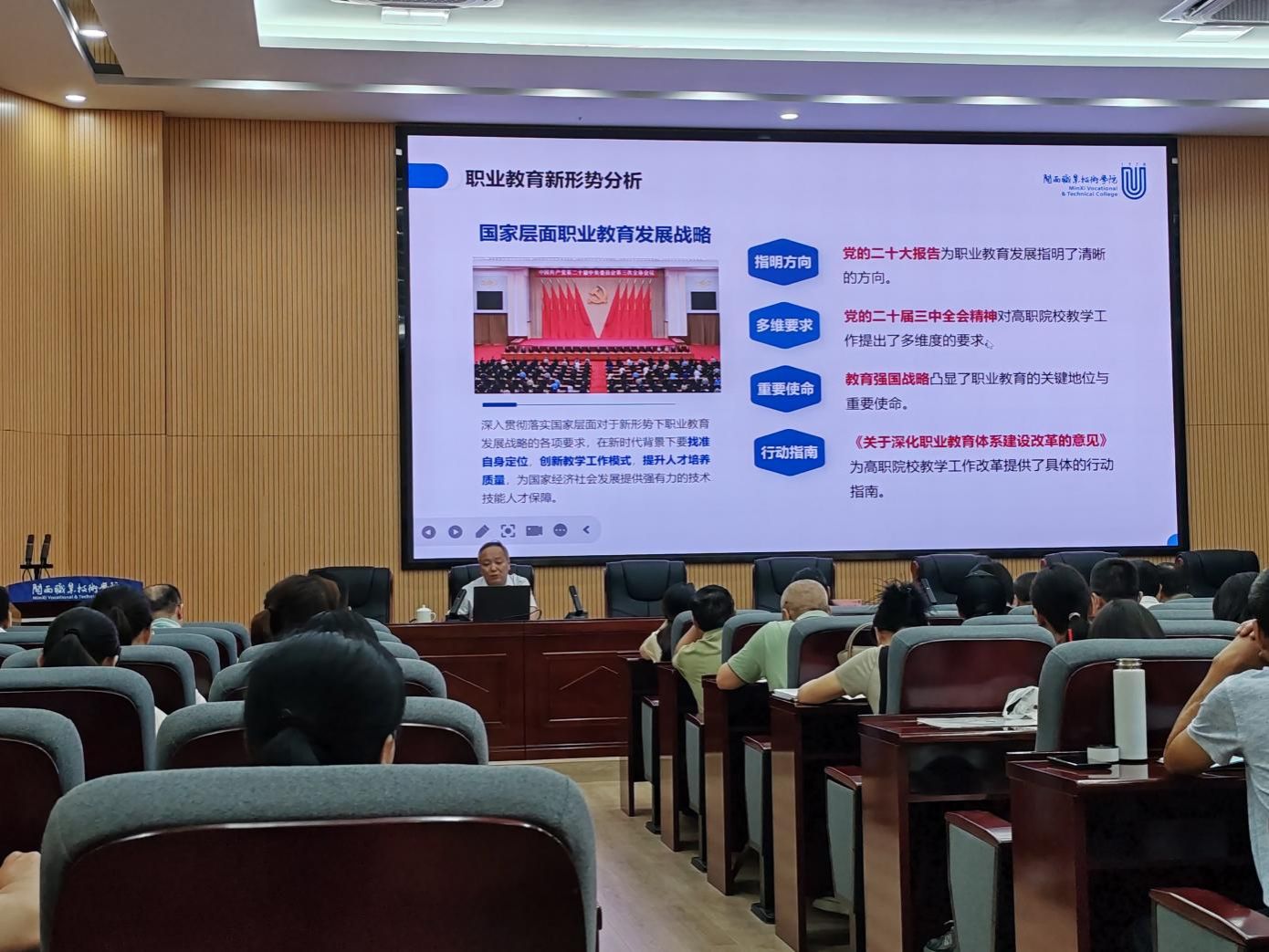 围绕重点任务,张副校长从专业结构优化、五金工程推进、科研创新赋能、人才培养体系重构、教学质量保障、实训生态升级、双创平台建设、职业本科攻坚及评估对标提升等九方面提出具体要求,号召全校以“比学赶超”的姿态竞逐发展赛道,为区域经济转型升级和职业教育提质培优贡献力量。