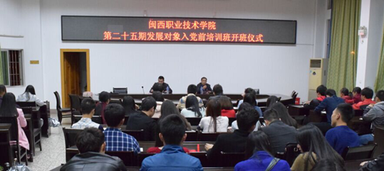 4月10日晚上,我院党校第二十五期发展对象入党前培训班开班仪式在办公楼二楼会议室举行,共84名发展对象接受培训。为提高培训质量,本期发展对象入党前培训班邀请了市委党校、市委讲师团等有关专家和学院领导授课,同时安排学员开展分组讨论等学习实践活动。
