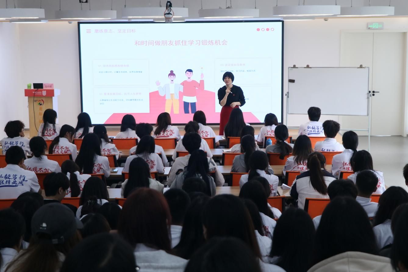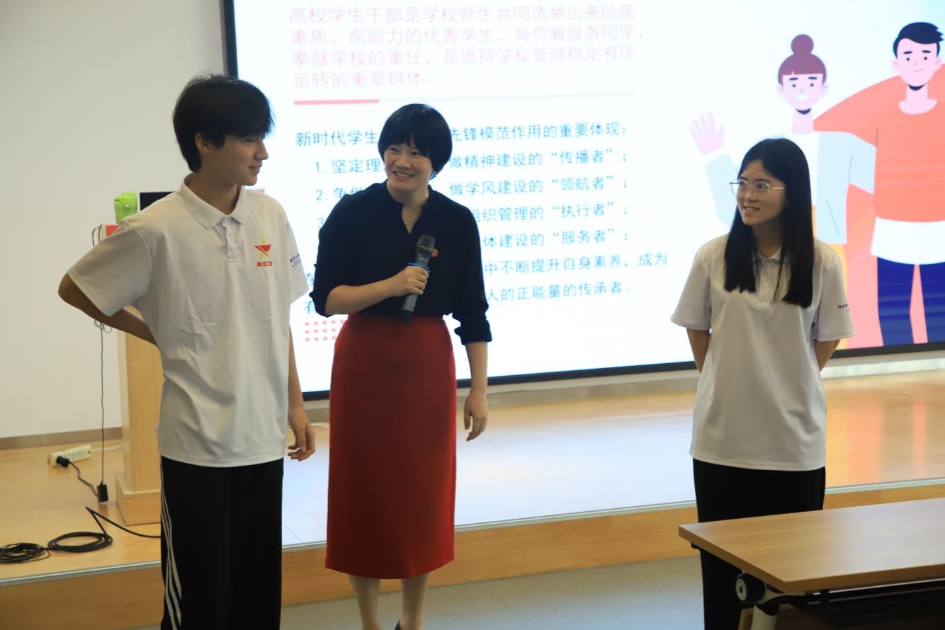 连玲娜副校长从“我是谁”着手,通过“自我介绍”“无声胜有声”“头脑风暴”等互动环节,引导青马学员对自身定位及知识技能做深入剖析。“优秀学生干部要修炼‘四力’——领导能力、组织能力、沟通能力、学习能力。”连玲娜副校长以生动案例解析学生干部“四力”的重要性,号召学员们以服务同学为宗旨,切实满足同学们的发展需求,争做精神建设的“传播者”、学风建设的“领航者”、组织管理的“执行者”、集体建设的“服务者”。