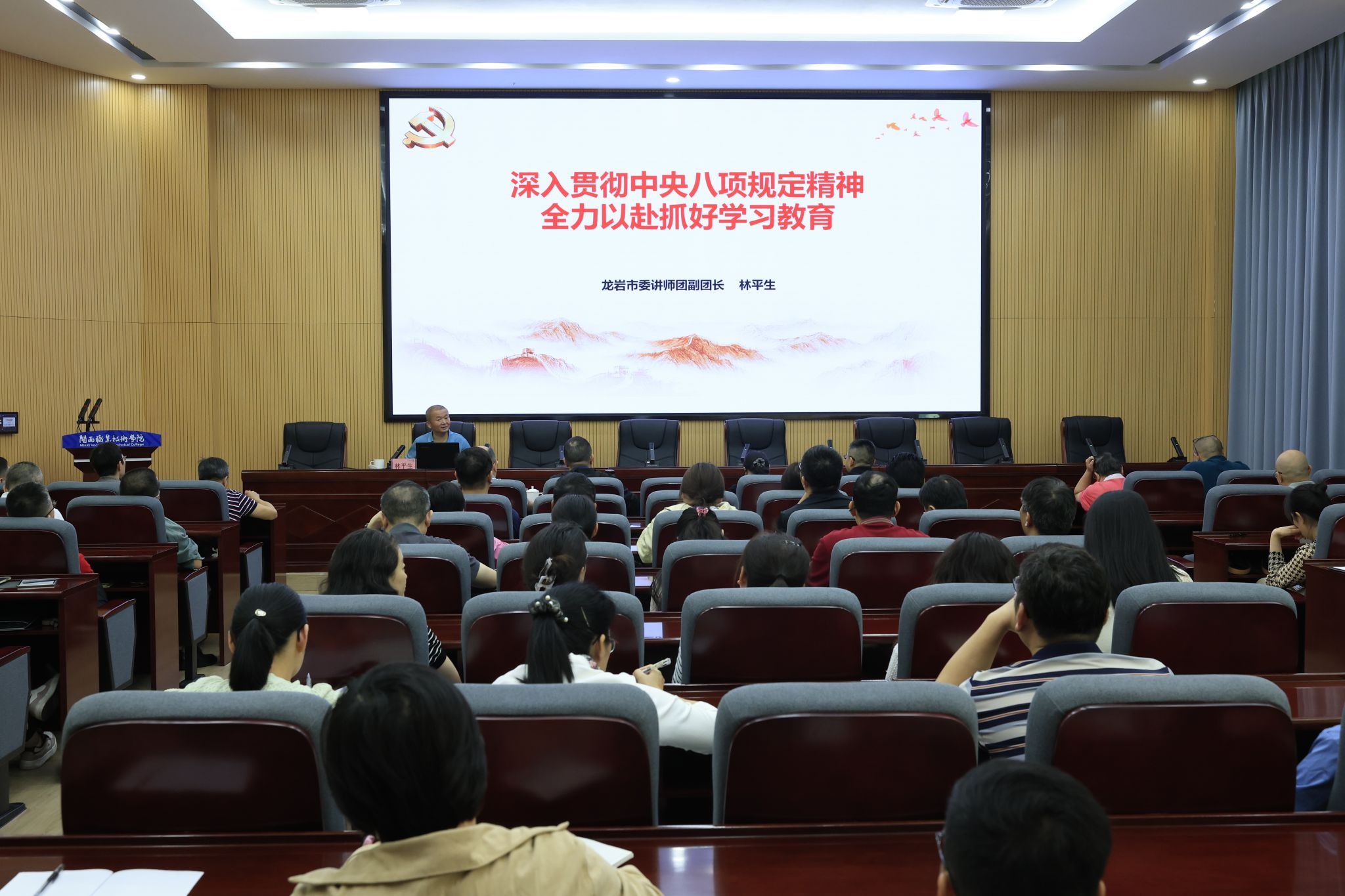 本次培训班邀请了中共龙岩市委讲师团副团长林平生同志为全体参训干部作题为《深入贯彻中央八项规定精神 全力以赴抓好学习教育》专题辅导讲座。林平生同志围绕中央八项规定及其实施细则精神展开深度解读,通过“理论阐释+案例警示”的模式,以深入浅出的语言为参训干部学习领会中央八项规定及其实施细则精神提供思想引领与实践指导。