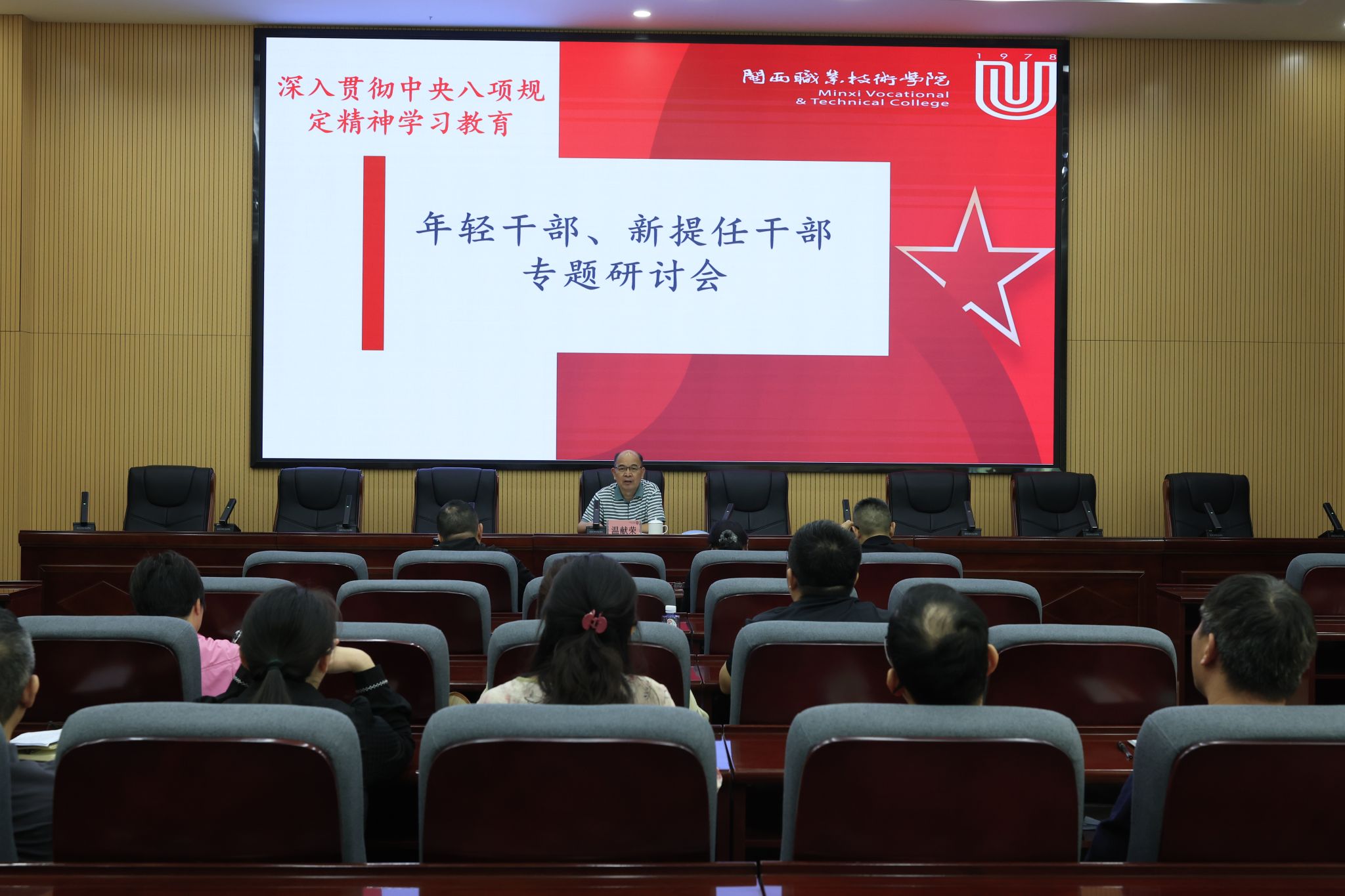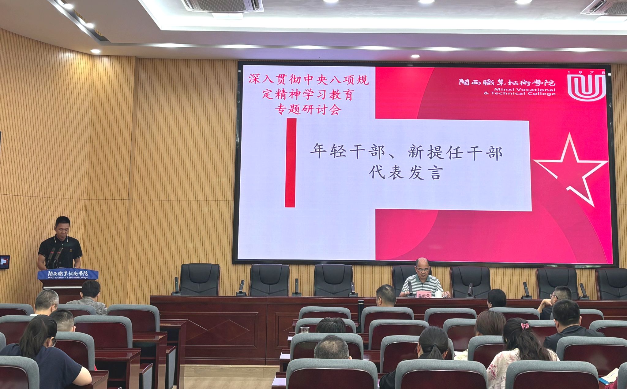 在座谈研讨环节,4名年轻干部代表围绕“深入贯彻中央八项规定精神”这一主题,联系学校工作实际、立足岗位职责、结合自身体会、所学所悟进行深入交流。校纪委温献荣书记与与年轻干部、新提拔干部面对面互动,交流工作感悟,提出具体要求,强调要锲而不舍抓好贯彻落实,要驰而不息加强作风建设,干部要带头深入学习、带头查摆问题、带头整改整治、带头改进作风,以钉钉子精神贯彻落实中央八项规定及其实施细则精神,一体推进学查改,确保学习教育取得实效,共同营造风清气正的校园政治生态。