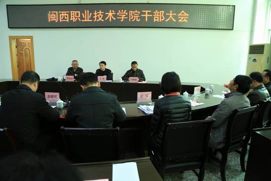 根据市委的统一部署和要求,2月6日上午,我校副校级领导干部2014年度考核干部大会在行政楼二楼会议室举行,以市委副处级组织员王胜为组长,市人才发展研究中心主任、市委组织部干部二科副科长李朗民为副组长的市委组织部干部考核组一行7人出席会议。党委书记马春延,院长来永宝,院领导吴新业、刘路永、卢兆梅、李贞鑫,院长助理李伟闽及全体中层领导干部参加了会议。