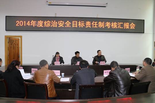卢兆梅副院长向考评组作了2014年综治安全目标管理责任考核自评总体情况汇报。他从“深化主体责任落实”、“健全长效管理机制”、“强化安全教育演练”、“建立立体防范体系”、“全力做好维稳工作”等五个方面汇报了我院综治安全工作开展情况。