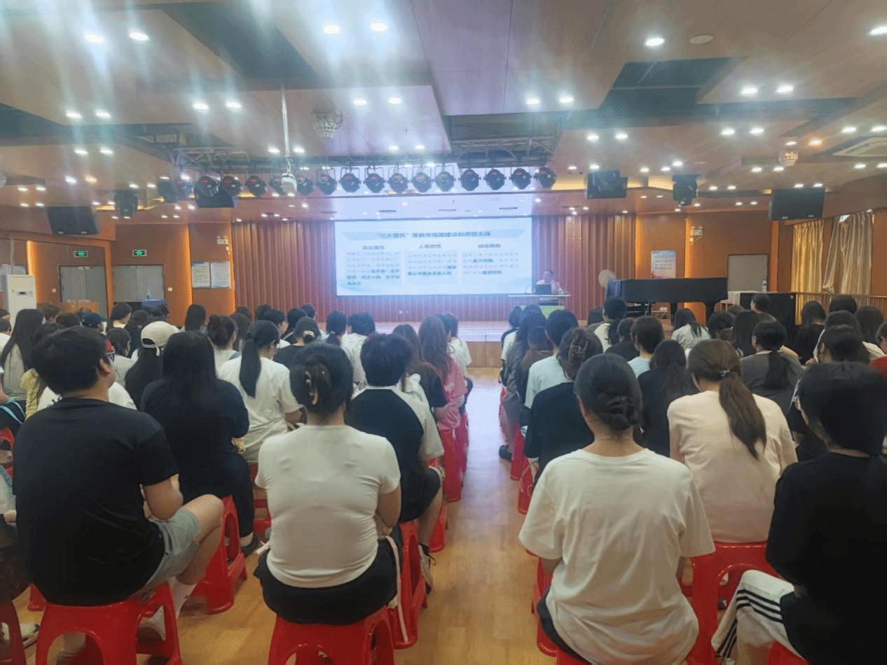 2025年6月5日,副校长卢兆梅以“从教育大国迈向教育强国”为主题,在岩声楼多功能厅为教育与艺术学院2024级学前教育五年专、早教和人力专业等120余名学生上思政课。