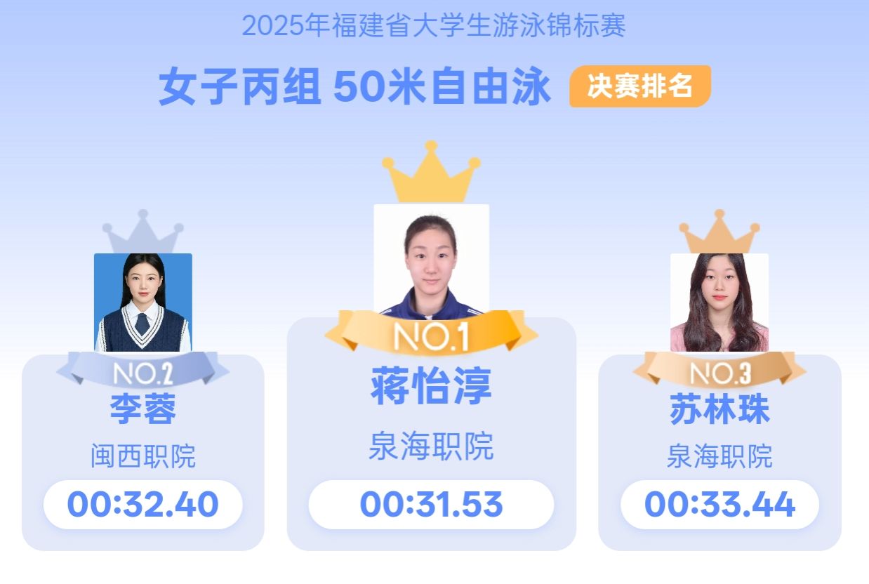 作为省内高校游泳竞技顶级赛事,福建省大学生游泳锦标赛为青春筑就逐梦舞台。我校游泳队秉持“团结、拼搏、超越”信念,与强手较量中,既验证日常训练成效,也攒下宝贵大赛经验。教练组表示,队员成绩源于科学训练规划与长期坚持,未来会优化备战策略,冲击更高荣誉。学校也将持续赋能游泳项目发展,为培养德智体美劳全面发展的新时代人才,注入体育力量!