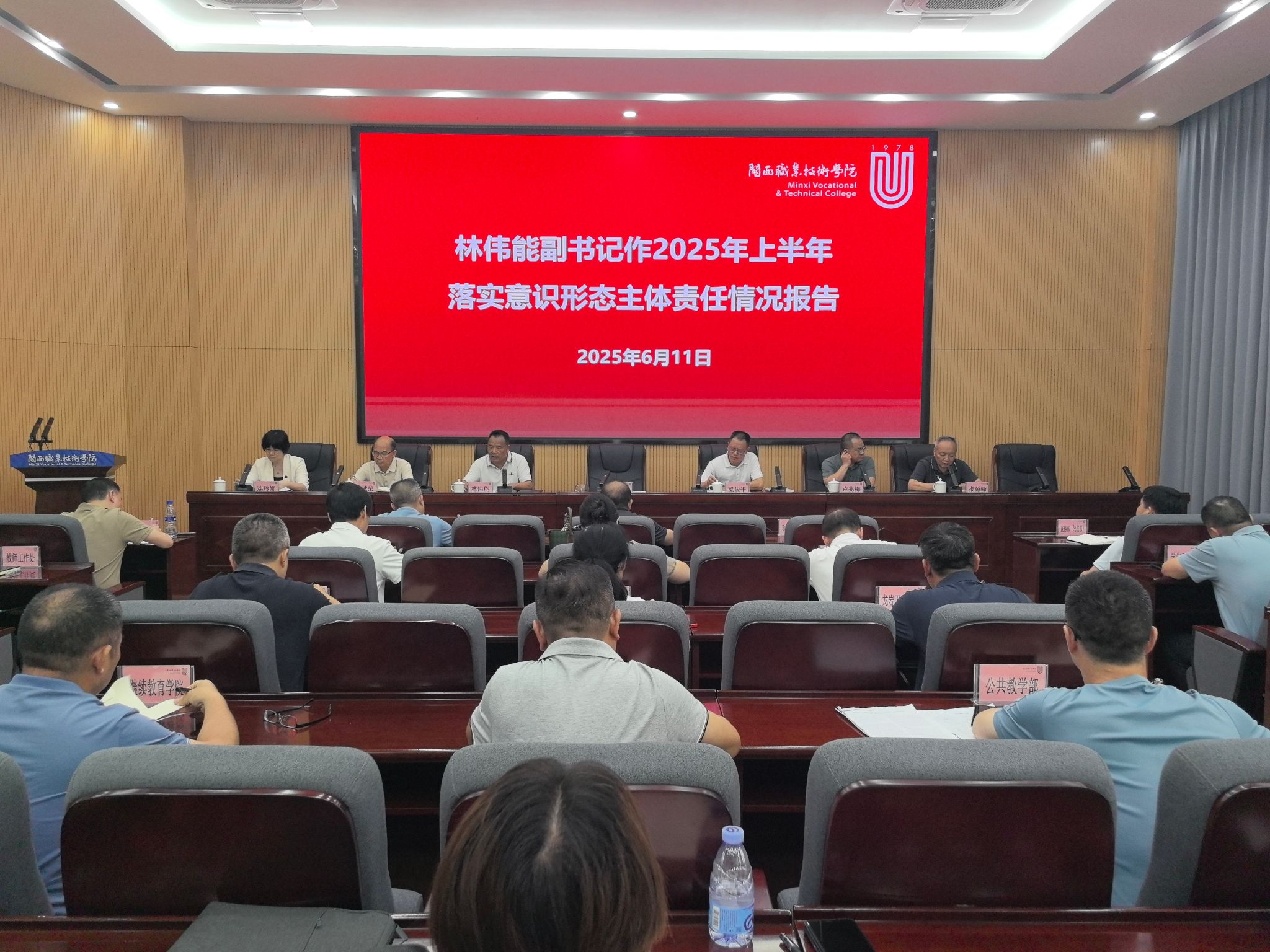会上,校党委林伟能副书记作我校2025年上半年落实意识形态主体责任制情况报告。随后,各所属党委书记对本单位上半年意识形态工作进行分析研判,汇报落实意识形态工作责任制情况。