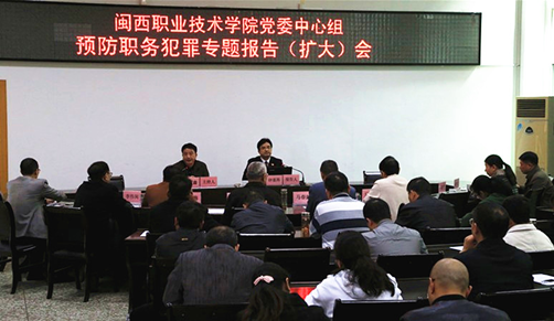 12月10日下午,学院党委理论学习中心组预防职务犯罪专题报告(扩大)会在办公楼二楼会议室召开。党委书记马春延,院长来永宝,院领导吴新业、卢兆梅、李贞鑫,院长助理李伟闽,全体中层干部及相关人员,共80余人参加会议。