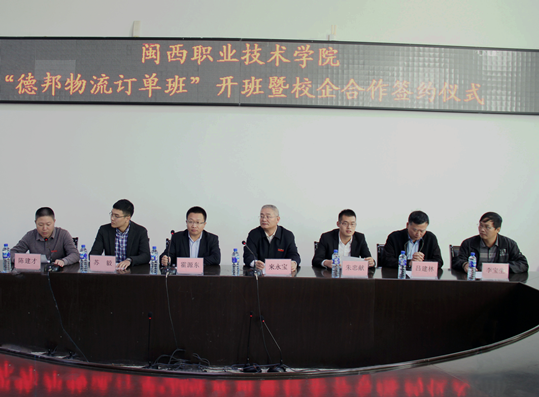 仪式上,来永宝院长介绍了我院的基本情况,强调了校企合作的重要性,指出双方要在人才培养、实训基地建设、双师培养、员工培训及社会服务等方面建立更加紧密的校企合作关系,实现优势互补、互利互惠、共创双赢。德邦物流厦门大区总经理霍源东介绍了德邦物流有限公司的发展历史、现状、人才培养、干部储备等情况,他希望以我院2015届“德邦物流订单班”为合作的新起点,双方建立稳定持久的合作,并期望同学们经过校企共同培养后,能成为德邦物流的一员,早日成长为公司的业务骨干,为公司发展添砖加瓦。