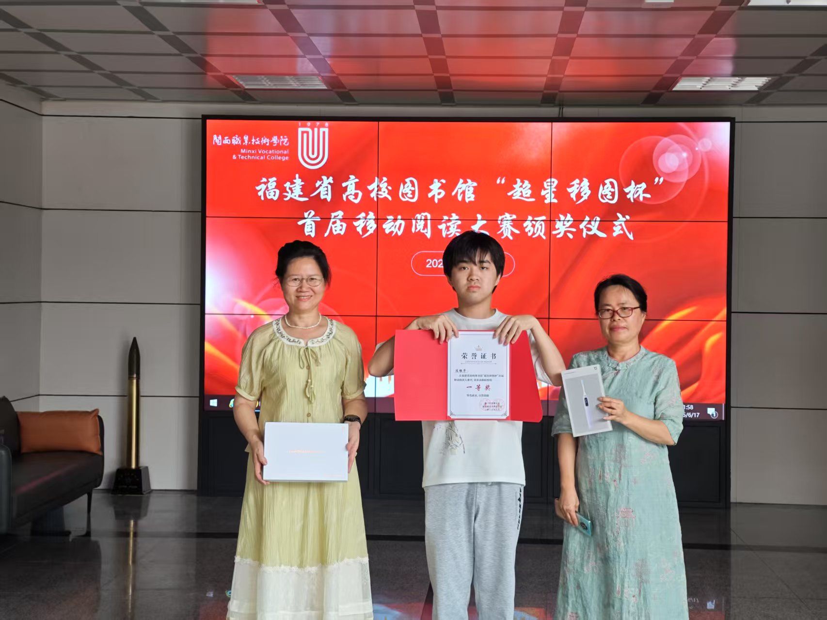 经过21天的角逐,我校陈银华同学荣获高职组一等奖,卢文杰同学荣获优秀奖。此次颁奖仪式的成功举办,为大赛画上了圆满句号。活动不仅提升了同学们的阅读能力与文化素养,更在福建省高校范围内掀起了一股阅读热潮,助力打造沉浸式书香校园,让阅读成为大学生生活的一部分,持续推动校园文化建设迈向新高度。