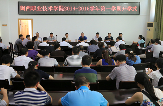 院长来永宝教授作了讲话。他说,2014-2015学年是我院国家骨干高职院校攻坚决胜验收之年,是党的群众路线教育实践活动整改落实之年,是实现我院办学定位的关键一年,是全面完成“十二五”规划的重要之年。全院上下要进一步增强责任感和紧迫感,以进取的姿态、必胜的信心、务实的作风做好各项工作。他从“扎实开展党的群众路线教育实践活动”、“市领导高度重视学院的发展”、“稳步推进国家骨干校有关工作”、“招生工作成绩喜人”、“有条不紊的推进重点项目建设”、“省运会我院取得佳绩”、“部署学院章程制定工作”等七方面通报了暑假期间工作情况。并对新学期工作提出了“巩固群众路线教育实践活动成果,建立长效机制”、“打好国家骨干建设的攻坚仗,确保验收顺利通过”、“加强专业群建设,凝练特色提升品牌”、“开展职称自主评聘工作,激发教职工积极性”、“加强校园文明建设,营造良好育人环境”、“进一步完善规章制度,提高内部管理工作水平”、“加强财务和资产管理,提高资金和资产使用效益”、“加强安全稳定工作,深化平安和谐校园建设”等八方面的具体要求。他强调,要在学院党委领导下,群策群力,真抓实干,勇往直前,不断开创学院工作的新局面,为推动学院事业加快发展,造福老区人民作出新的更大贡献。