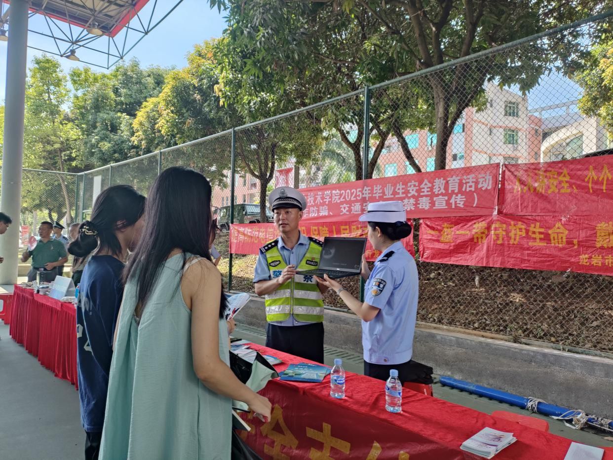 6月25日,我校在槟龙球场毕业生招聘会现场举办了国防教育与安全宣传活动。活动由校方联合新罗区征兵办、新罗区交警大队、曹溪派出所等单位共同开展,连玲娜副校长参加。
