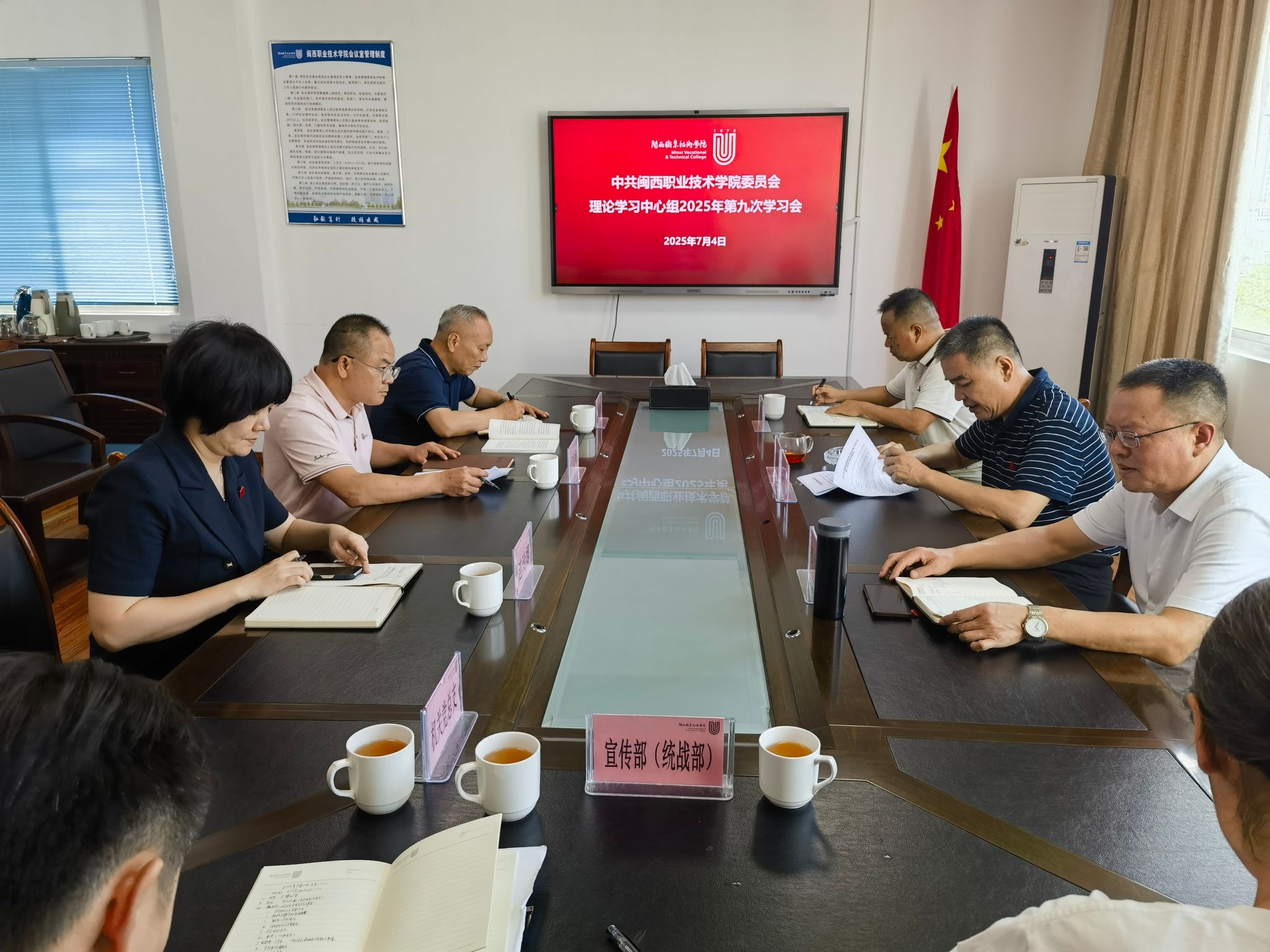 校党委理论学习中心组成员会前认真研读自学《2025年理论学习中心组第九期学习资料》。