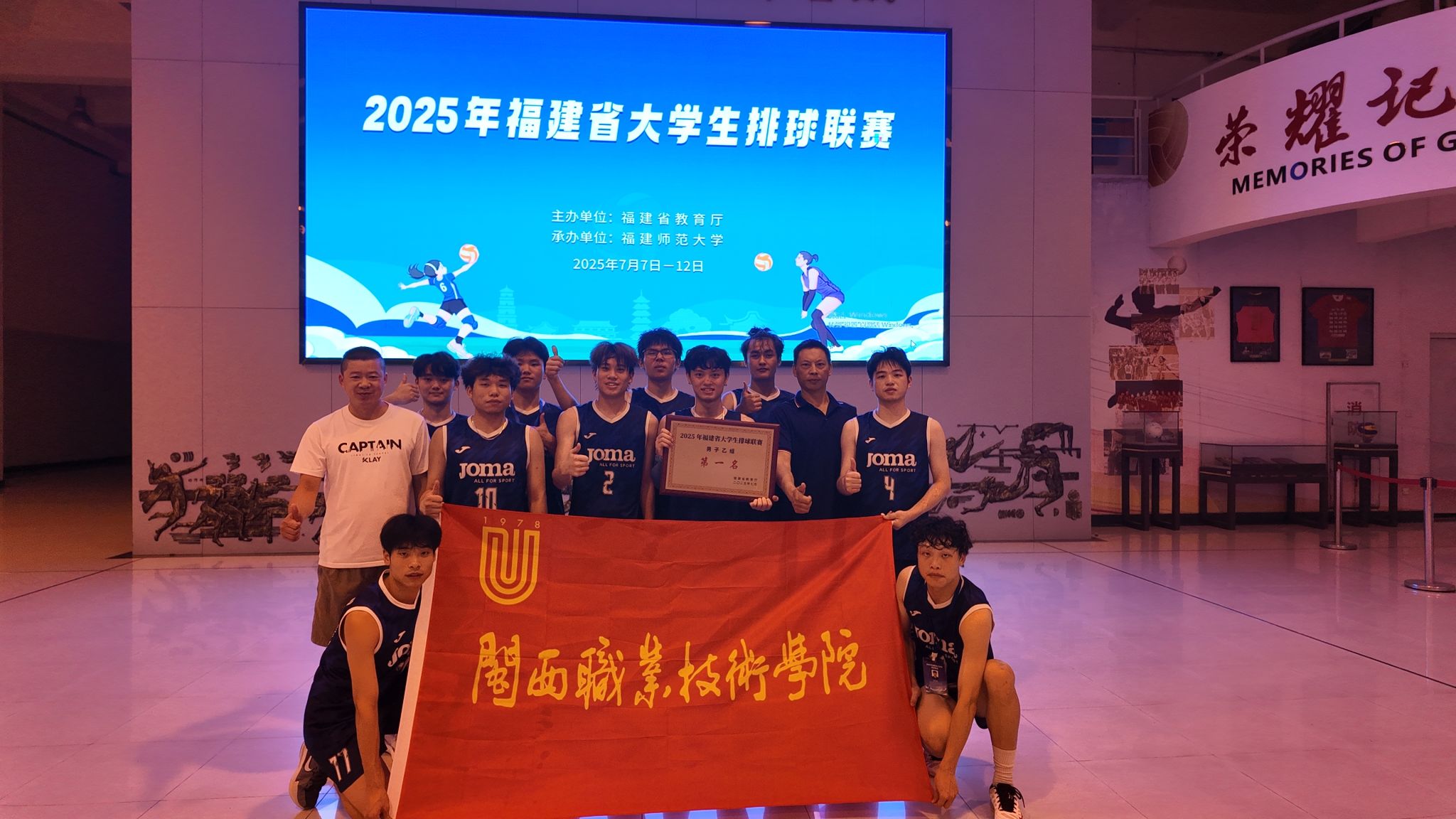 在刚刚结束的2025年福建省大学生排球联赛决赛中,我校男子排球队以顽强斗志和精湛技艺勇夺男子乙组冠军。此次排球联赛于7月9日至12日在福建师范大学举行,吸引了全省三十余所高校代表队同场竞技。作为我校优势体育项目,我校男排继2022年省大学生运动会后再次获得排球集体项目第一,彰显我校“双高”体育健康品牌、“予生最好学校”建设成效。