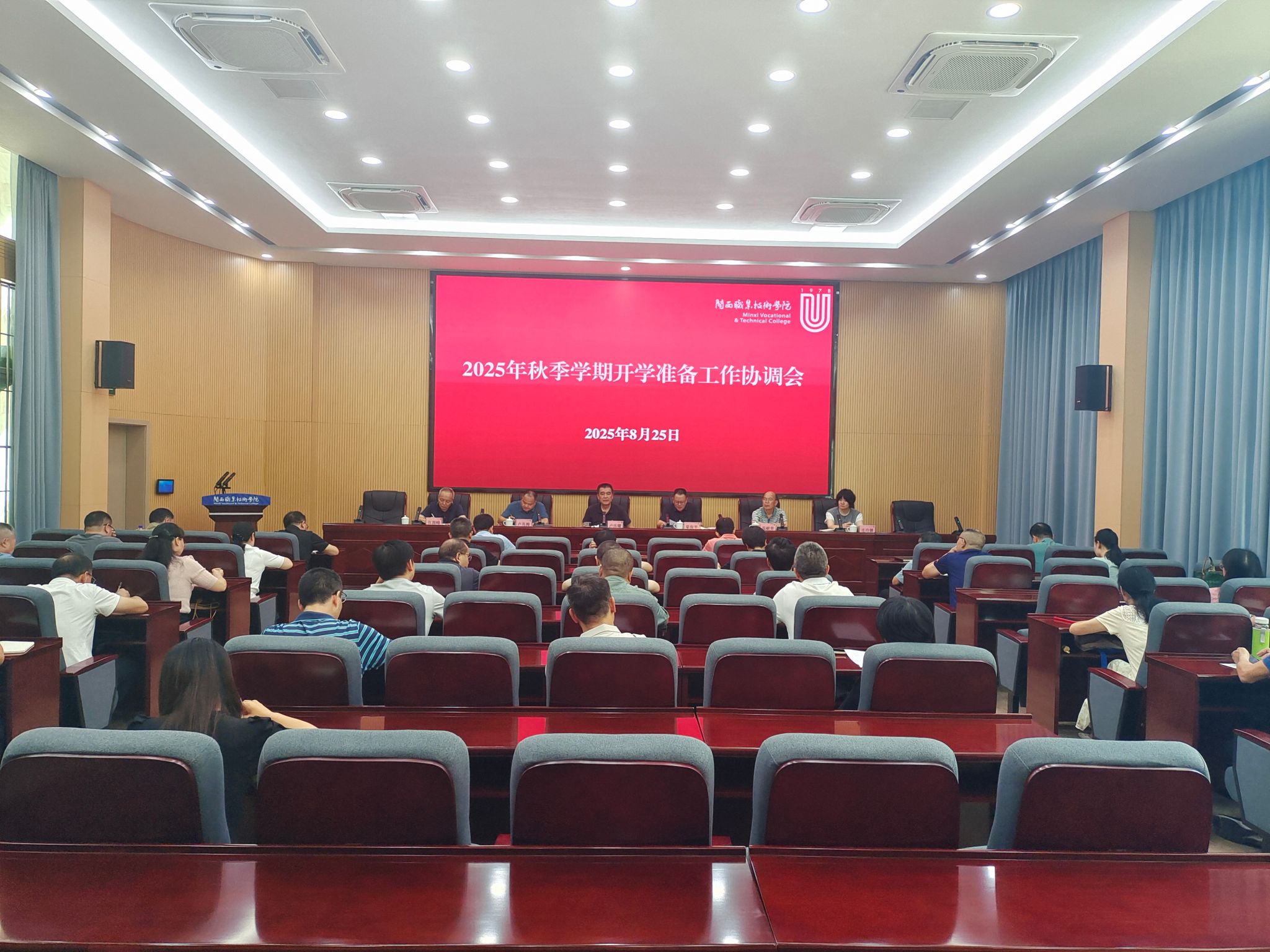 8月25日上午,我校在协成楼第一会议室召开2025年秋季学期开学准备工作协调会。在家校领导,各部门、单位负责人,各二级学院(含卫校)党委书记、院长参加协调会,会议由校党委委员、副校长卢兆梅主持。