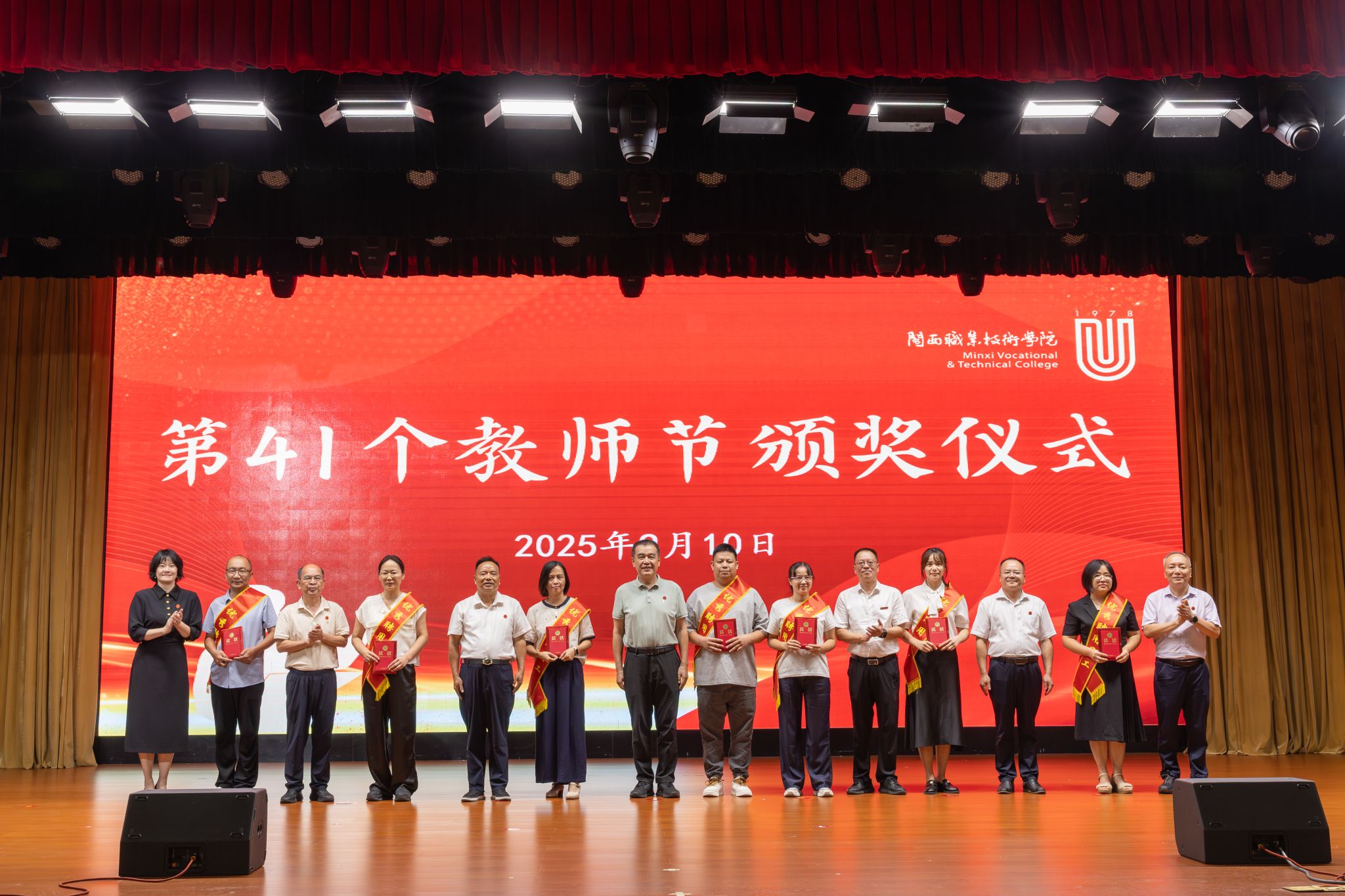 2025年9月10日下午,我校在大匠堂隆重举行庆祝第41个教师节大会,全体校领导、全校教职员工参加大会,会议由校党委副书记林伟能主持。