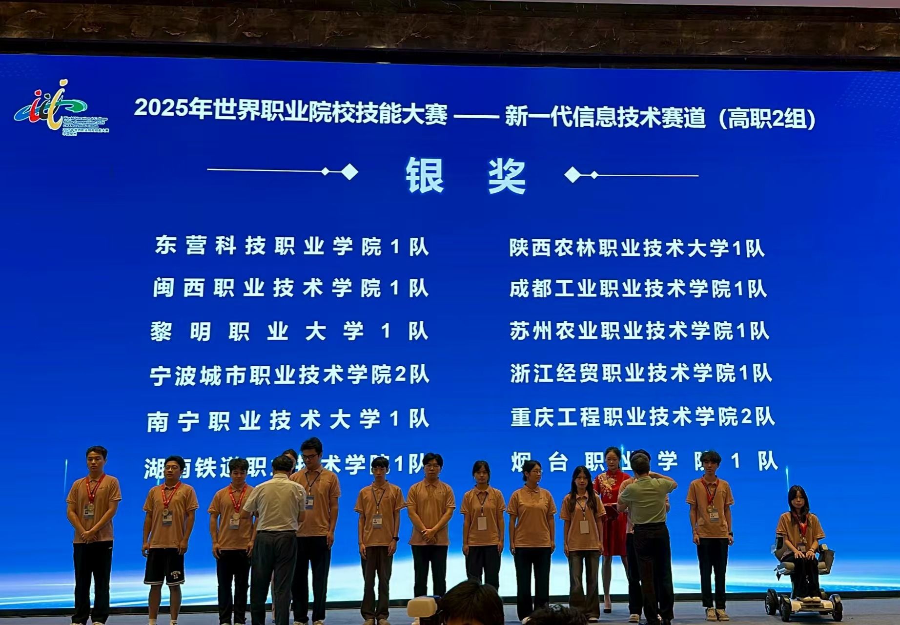 在本次大赛中,由我校信息工程学院黄素叶、滕碧红两位教师指导,范俊翔、张语嫣、潘彦廷、游通川四位同学组成的参赛团队,凭借扎实的专业技能、出色的应变能力和稳定的临场发挥,在激烈竞争中脱颖而出,斩获该赛道银奖。