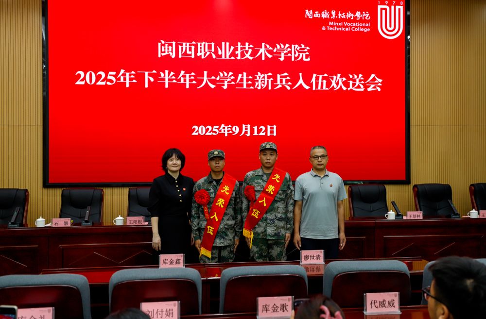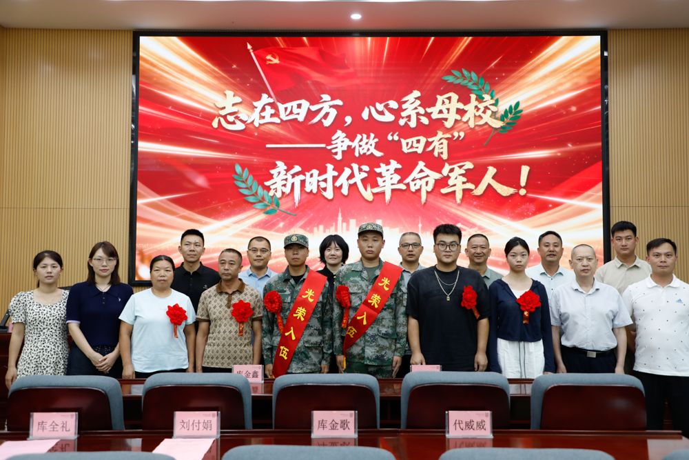 志在四方,心系母校,争做“四有”新时代革命军人。2025年9月12日下午,我校在协成楼第一会议室举行2025年下半年大学生新兵入伍欢送会。副校长连玲娜,学生工作处、安全保卫处(武装部)负责人及相关工作人员,信息工程学院、文化与旅游学院相关负责人、辅导员、师生代表,2位大学生入伍新兵、新兵家长代表及“红旗不倒”军魂社学生干部等100余人共同见证这一庄严时刻。