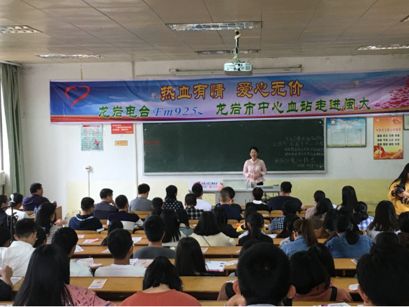 活动中,龙岩电台新闻综合频率FM925的主持人集体亮相,各主持人向在场师生介绍了所主持的栏目并传播了献血常识。龙岩中心血站副站长曾德成为大家宣讲无偿献血知识,同时穿插有奖问答,令在场师学生了解到无偿献血是有利于身体健康的公益活动。活动还邀请献血英雄王卫、我校献血学生分享了他们自身的献血经历。