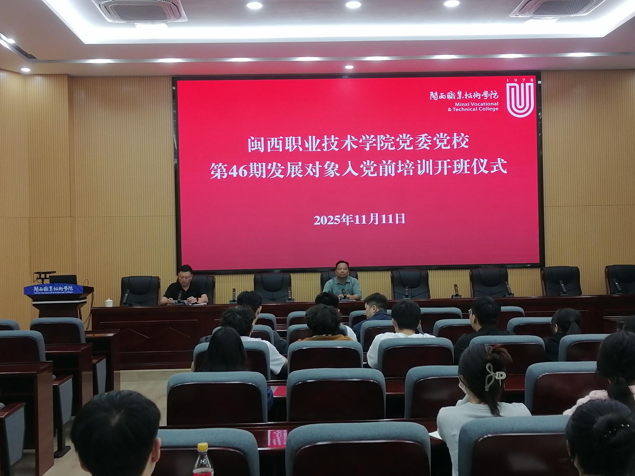 2025年11月11日下午,在协成楼第一会议室,学校党委党校举办第46期发展对象入党前培训班,本次培训共71位学员参加。党校副校长组织人事处陈驰处长作开班动员讲话,强调本期培训是深入学习贯彻党的二十大精神的关键举措,激励学员们以饱满的热情投入学习,以实际行动接受党组织的考验。
