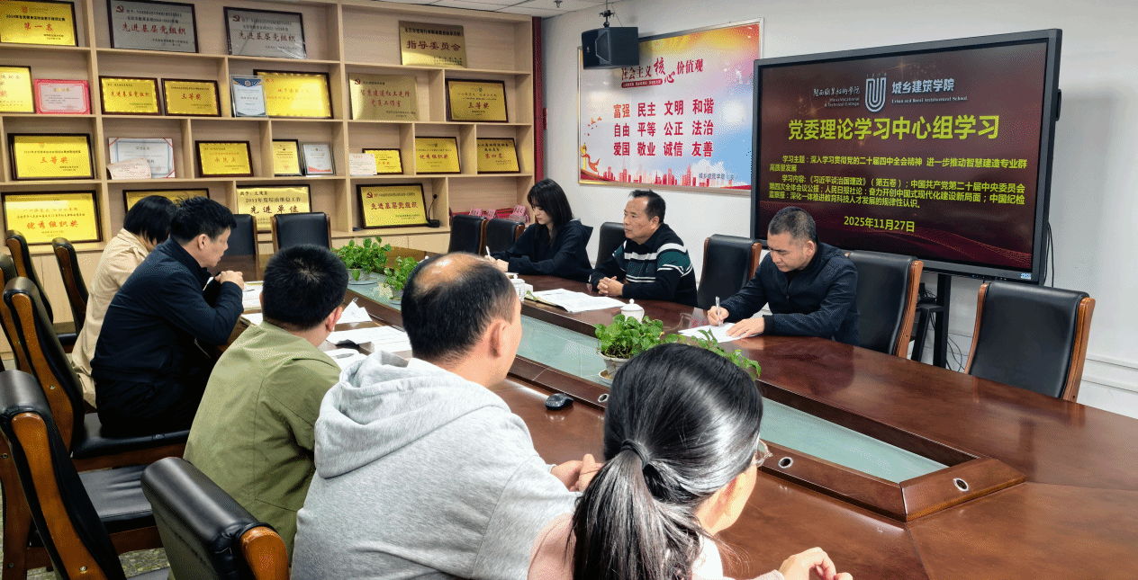 学习会以“深入学习贯彻党的二十届四中全会精神,进一步推动智慧建造专业群高质量发展”为主题。会前自主学习中国共产党第二十届中央委员会第四次全体会议公报、人民日报社论等相关篇目。会上李志文同志领学党的二十届四中全会精神、林茂才同志导学《习近平谈治国理政》第五卷,学习组成员结合工作实际谈学习体会和交流发言。