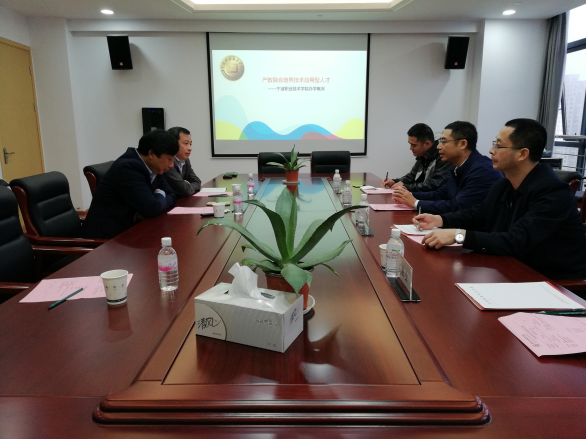 张慧波校长介绍了宁波职业技术学院的概况,从政、校、企三方联动的合作办学机制、专业(群)设置与地方产业契合、学校与企业共建创业学院、探索跨专业交叉培养复合型人才等方面作了经验介绍,并表达了继续传承两校姐妹院校感情,加强深化交流合作的意愿。