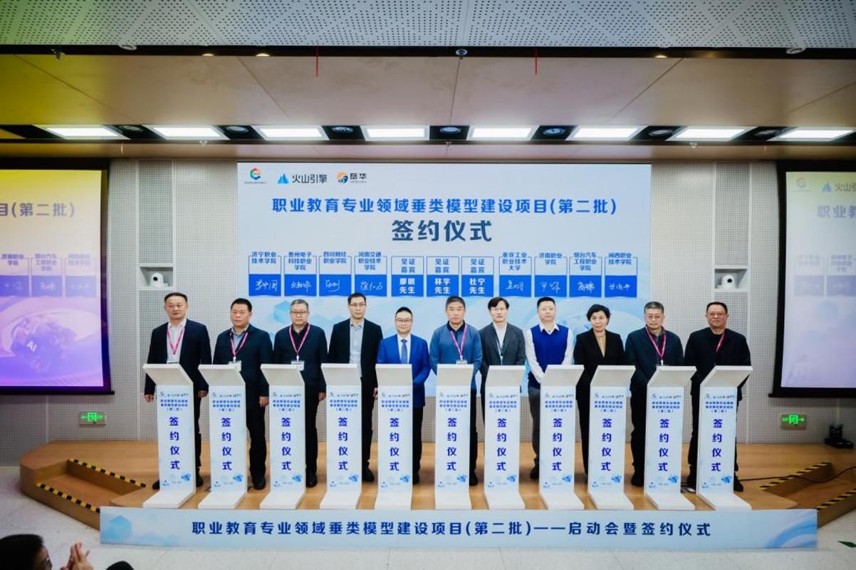 2025年12月12日,无码人妻AV一二区二区三区党委副书记、校长梁俊平带队,财经商贸学院相关人员一行,赴北京出席由教育部职业教育发展中心指导、北京火山引擎科技有限公司主办、天津市岳华科技有限公司承办的“职业教育专业领域垂类模型建设项目(第二批)”启动会暨签约仪式。