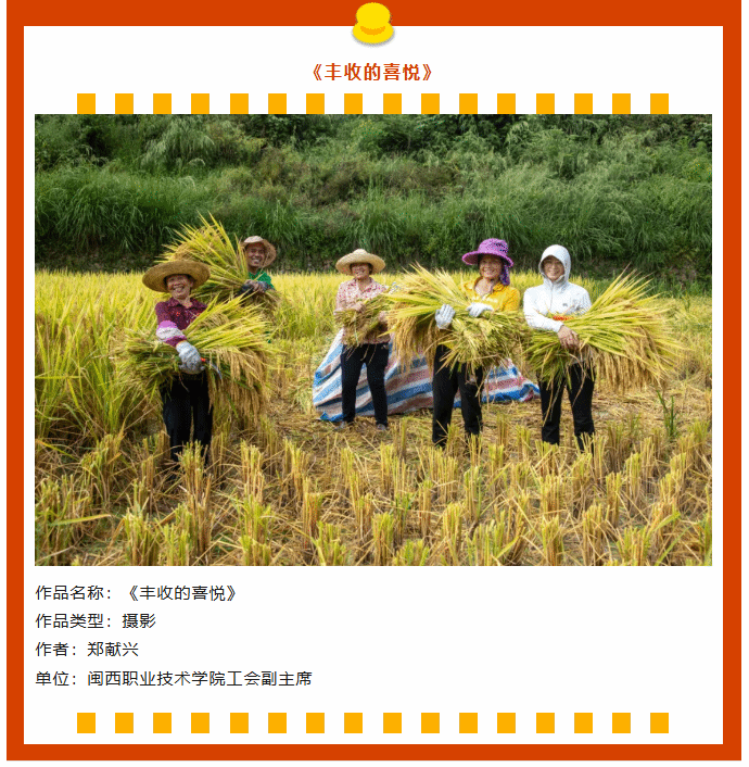 近日,第八届(2025)闽台港澳职工书画摄影联展入选名单揭晓,我校工会专职副主席郑献兴同志的摄影作品《丰收的喜悦》《根雕艺人》成功入选参展。