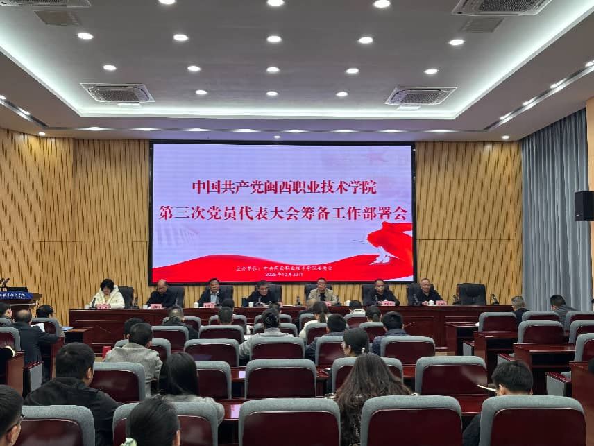 2025年12月23日下午,我校在协成楼第一会议室召开第三次党代会动员部署会暨培训会,全体校领导、各所属党委(总支)书记、第三次党员代表大会筹备工作领导小组及工作组成员参加了会议。校党委卢伟耀书记作动员讲话。