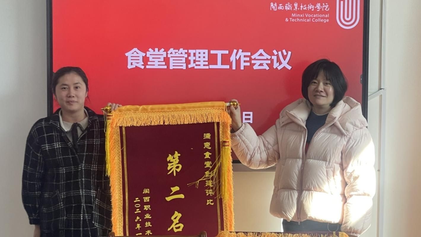 梁俊平校长、连玲娜副校长分别为获评“满意食堂”评比第一名的第二食堂、第二名的第三食堂颁发锦旗。
