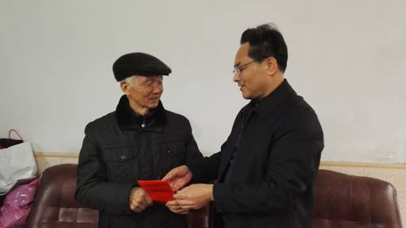 在退休干部邱乾照家中,罗初辉与其拉家常,详细询问其家庭生活情况、身体健康状况,祝愿其春节快乐、健康长寿。叮嘱学校要落实好退休干部政策,做到在思想上关心、生活上照顾、精神上关怀。