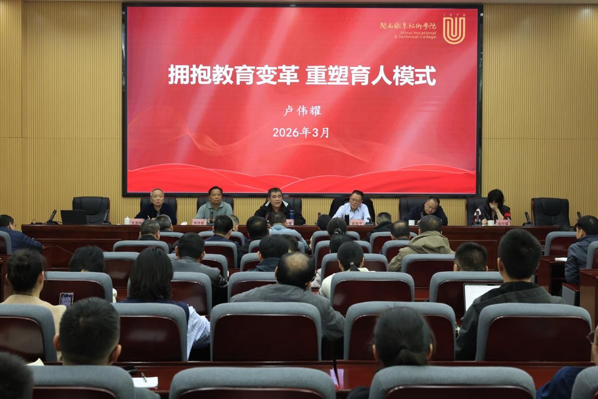 党委书记卢伟耀以《拥抱教育变革 重塑育人模式》为题作总结讲话。他指出,真正淘汰我们的并非新技术本身,而是固化的教育理念、滞后的教学方式和僵化的管理思维。面对AI技术加速演进带来的教育变革浪潮,学校必须主动打破校园围墙,推动教育从“标准答案式”的知识灌输向“解决真实问题”的能力培养转型。他提出,一是打破校园围墙,构建“场景化”育人体系;二是深化课堂革命,推行项目化教学;三是重塑教师角色,推动教师从“讲课人”向“育人导师”转变;四是改革评价体系,建立以项目成果、技能水平为核心的多元评价导向。他强调,只有主动拥抱变革、主动融入社会,才能真正树立和践行正确政绩观。要坚持以变革求生存,以创新促发展,推动各项工作稳中求进、提质增效,努力办好适应未来需求的职业教育。