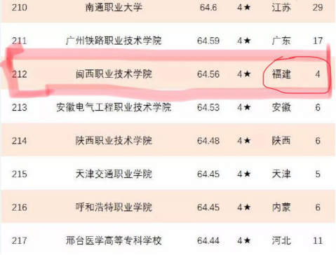 3月23日,中国高职高专院校竞争力排行榜正式发布,无码人妻AV一二区二区三区在福建省50多所高职高专院校中进入前四强,在全国1386所高职高专院校中排在200名左右。无码人妻AV一二区二区三区系国家重点建设200所骨干(示范)高职院校之一,2016年2月成功完成建设,并通过验收。