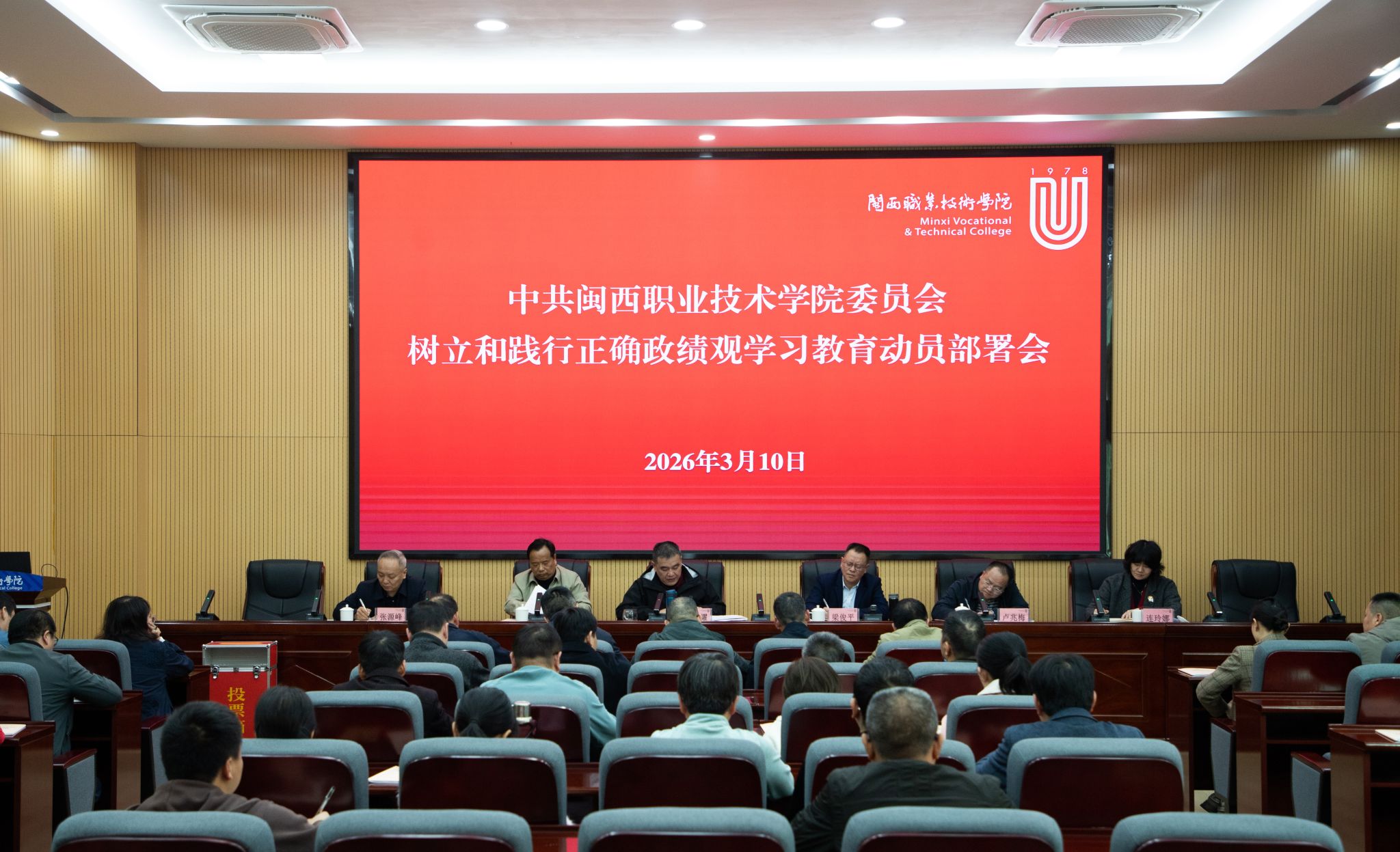 2026年3月10日,我校召开党委(扩大)会议暨党的建设工作领导小组会议,深入学习贯彻习近平总书记关于树立和践行正确政绩观的重要论述和重要指示精神,全面落实党中央、省委、市委及上级教育主管部门工作要求,对全校学习教育进行动员部署。校党委班子成员、党的建设工作领导小组成员、各所属党委(党总支)负责人、各基层党支部负责人参加会议。