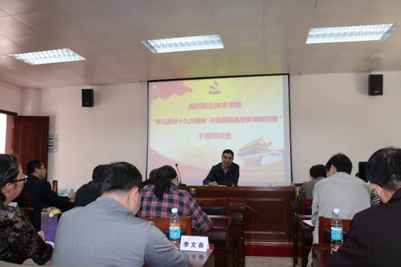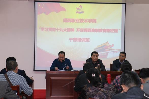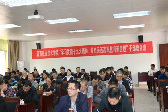 为深入学习贯彻习近平新时代中国特色社会主义思想和党的十九大精神,进一步加强干部队伍建设, 3月31日-4月1日,我校在永定区委党校举办“学习贯彻十九大精神 开启闽西高职教育新征程”中层干部培训班,校领导及中层干部参加培训。