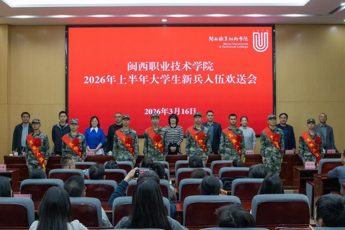 春潮涌动启新程,戎装逐梦赴荣光。3月16日下午,我校召开2026年上半年大学生新兵入伍欢送会。校领导连玲娜、学生工作处、安全保卫处和相关二级学院负责人、辅导员,8位入伍新兵和新兵家长代表、学生代表及校人民武装部全体人员参加。