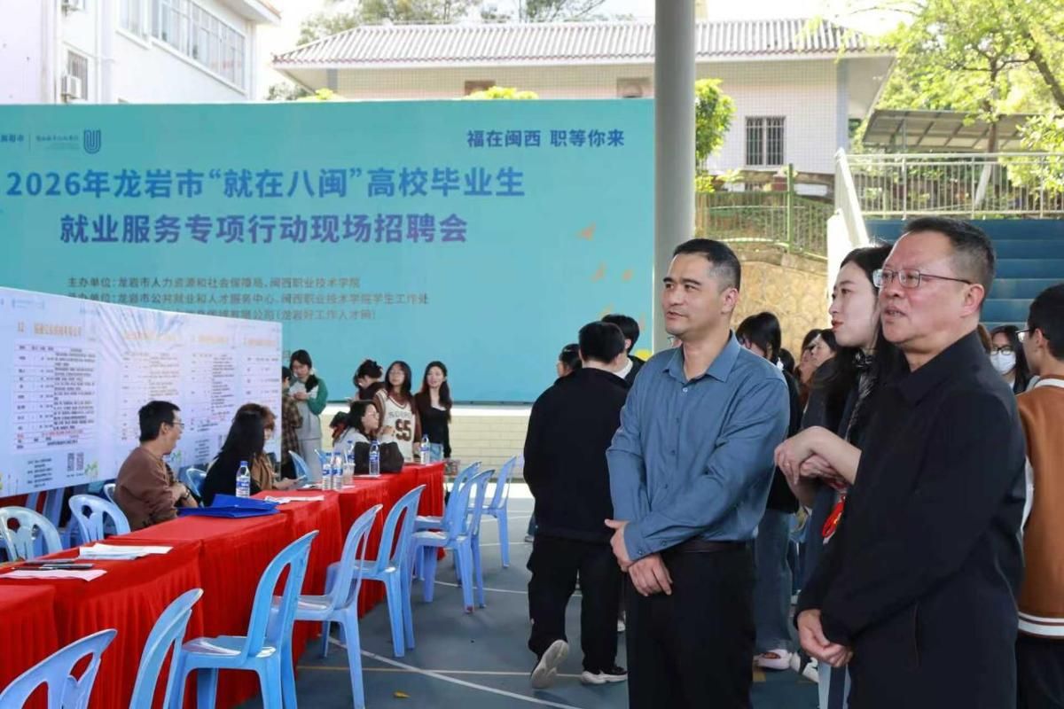 3月17日下午,我校联合龙岩市人力资源和社会保障局在槟龙球场成功举办“福在闽西 职等你来”2026年龙岩市“就在八闽”高校毕业生就业服务专项行动现场招聘会,校长梁俊平亲临现场指导。