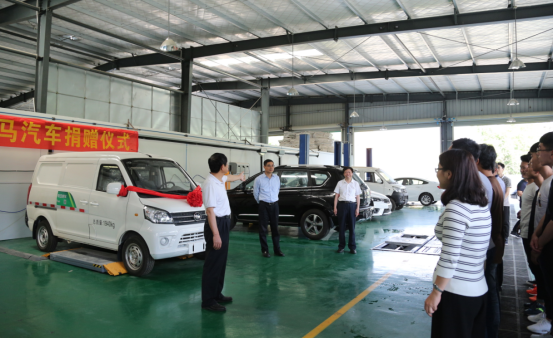 福建新龙马汽车股份有限公司捐赠给我校的是新龙马公司研发和制造的新能源试验车,专供我校信息与制造学院“汽车检测与维修技术”专业实训使用。汽车捐赠仪式在信息与制造学院“汽车检测与维修技术”专业实训室举行,郑志强和邹洪钦亲手为捐赠车剪彩。