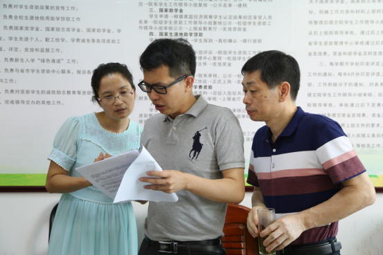 省评估验收组在认真听取了卢兆梅关于学校学生资助管理中心近年来开展标准化创建工作、学生资助情况的汇报后,前往学生资助管理中心现场查看办公运行及相关硬件的配备情况,同时对照《福建省市、县(区)、高等院校和省属中职学校学生资助管理中心标准化建设评估标准》的要求,对学校资助管理中心机构建设、业务职能、管理规范、工作经费、硬件设施、宣传教育等方面的工作进行全面考核。考核组对我校学生资助标准化建设工作给予了充分肯定,同时也对我校资助中心工作提出了期望与要求。