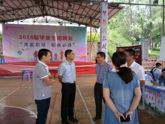 6月13日上午,我校2018届毕业生专场招聘会在槟龙球场举行。此次招聘会由我校主办,就业指导中心承办。我校校长郑志强,龙岩市人社局陈国新主任、就业中心市场科谢杏芳科长一行到现场指导工作。